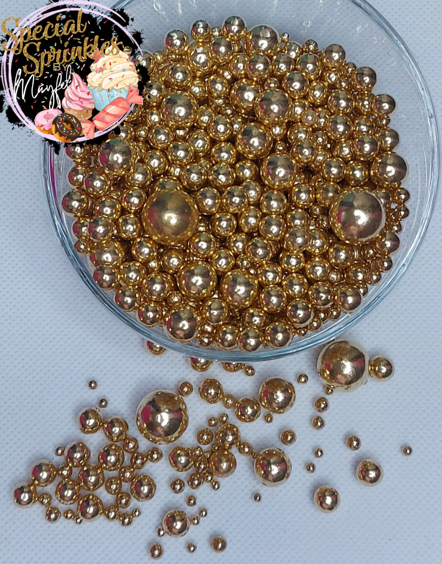 Dale ese toque de glamour a tus trabajos con estas brillantes perlas metálicas. que vienen en una mezcla de varios tamaños. (2 mm, 4mm, 7mm, 10mm, y 12mm). Son libres de gluten y GMO.