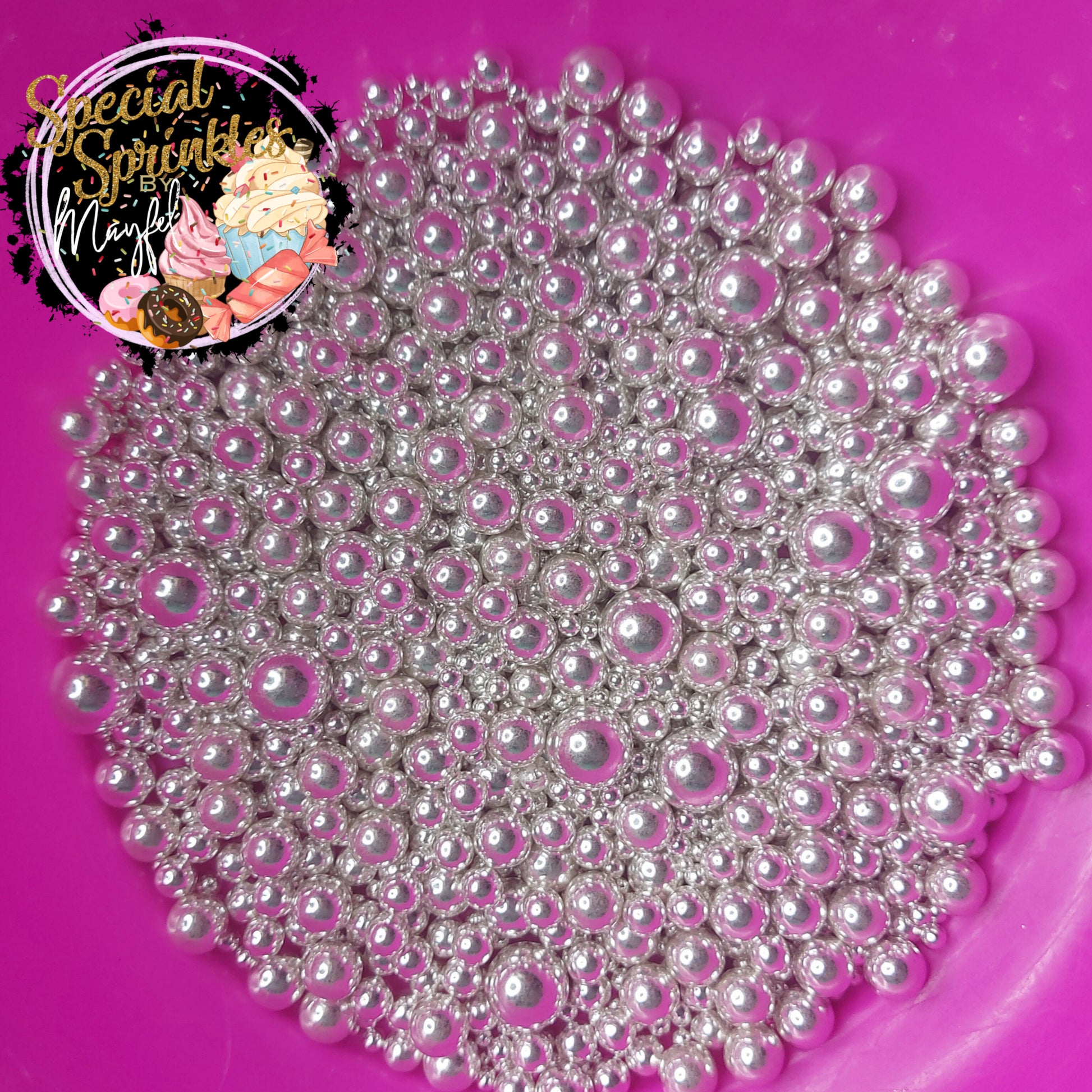 Dale ese toque de glamour a tus trabajos con estas brillantes perlas metálicas. que vienen en una mezcla de varios tamaños. (2 mm, 4mm, 7mm, 10mm, y 12mm). Son libres de gluten y GMO.