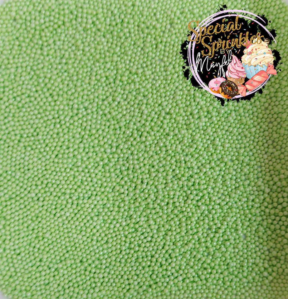 Non pareils perladas color verde claro. Tamaño 2mm. Son libres de gluten y GMO.