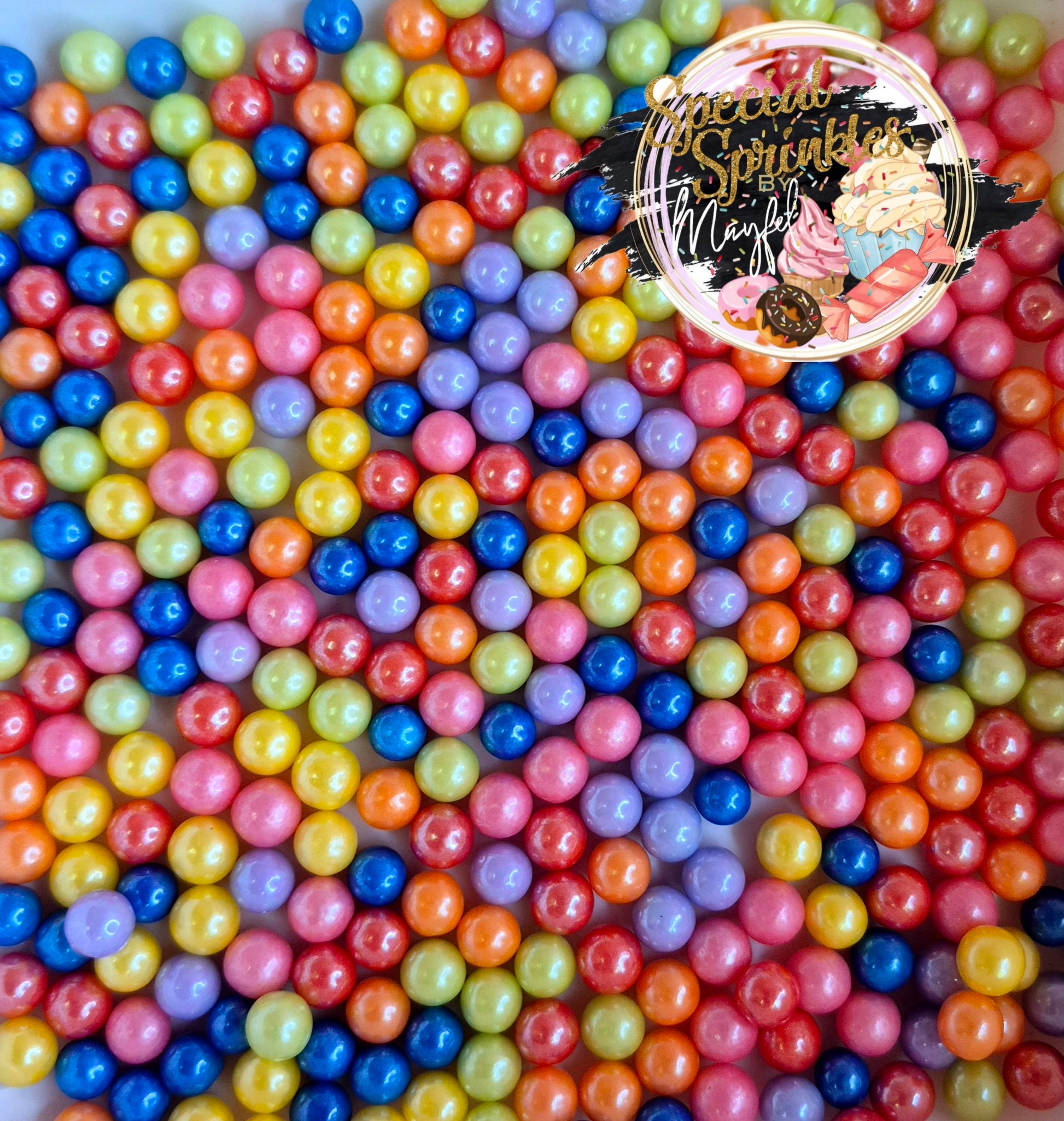 Ingredientes: Sugar 71.26%, corn starch 26.97%, dextrin 1.62%, carnauba wax 0.05%, shellac 0.5%, gum Arabic 0.05%, edible colorant E120, E124, E162, E210, E141, E133, E110, E129, E102, 0.03% for serving size (100gr). Son libres de gluten y GMO.