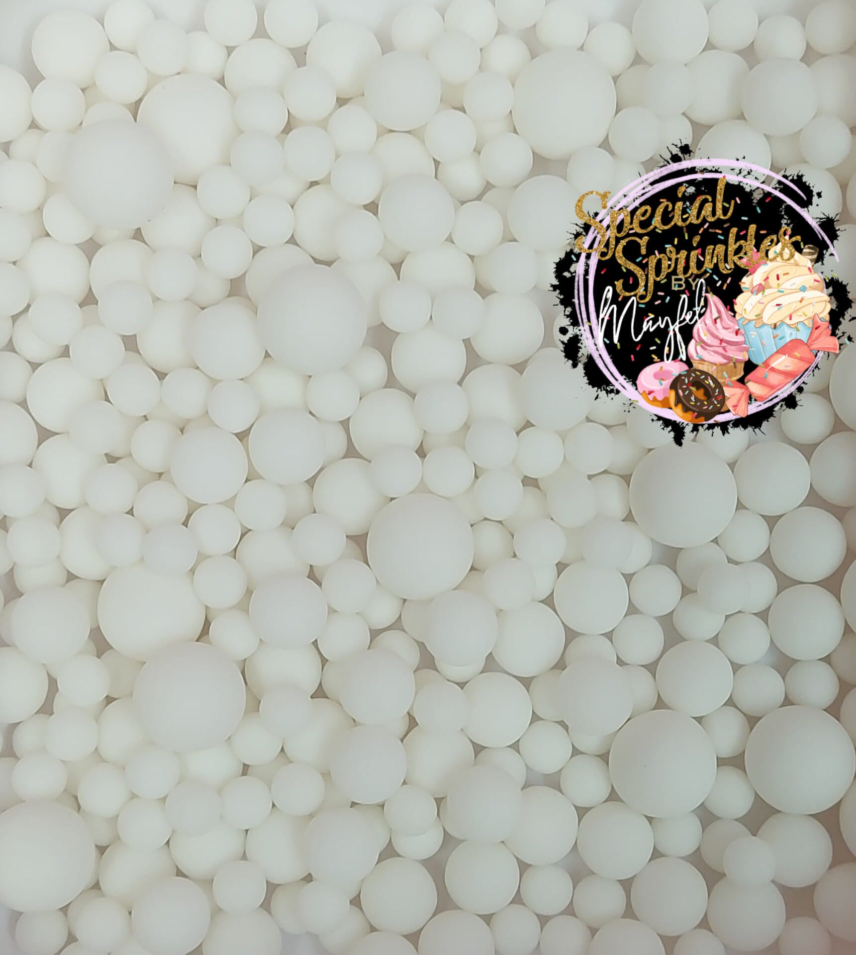 Mix de perlas con un acabado matte color blancas de 3 tamaños (7mm, 10mm y 14mm).