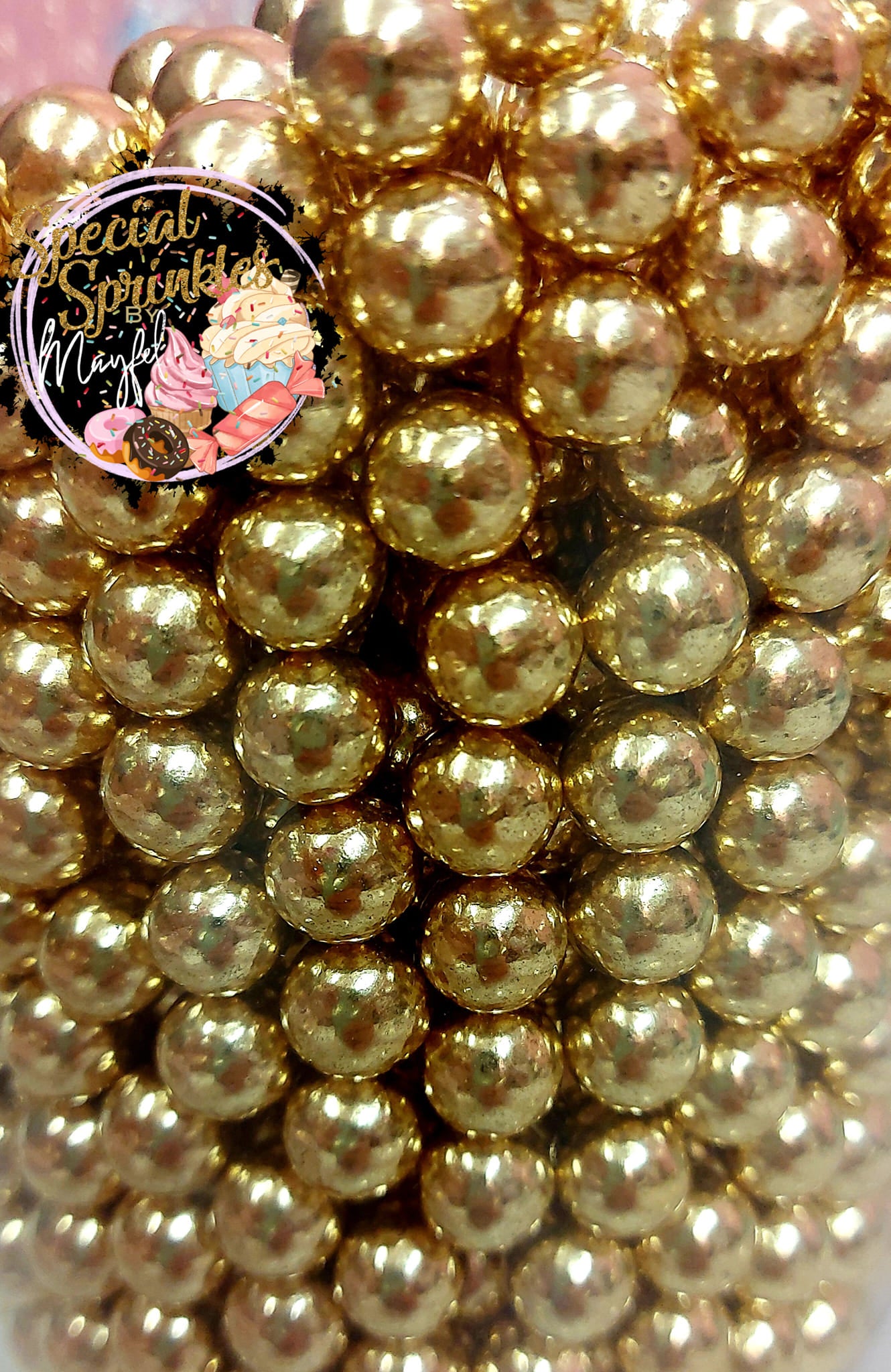 Estás perlas tienen un acabado metálico color oro, en tamaño grande de 10mm, son libres de gluten y GMO.