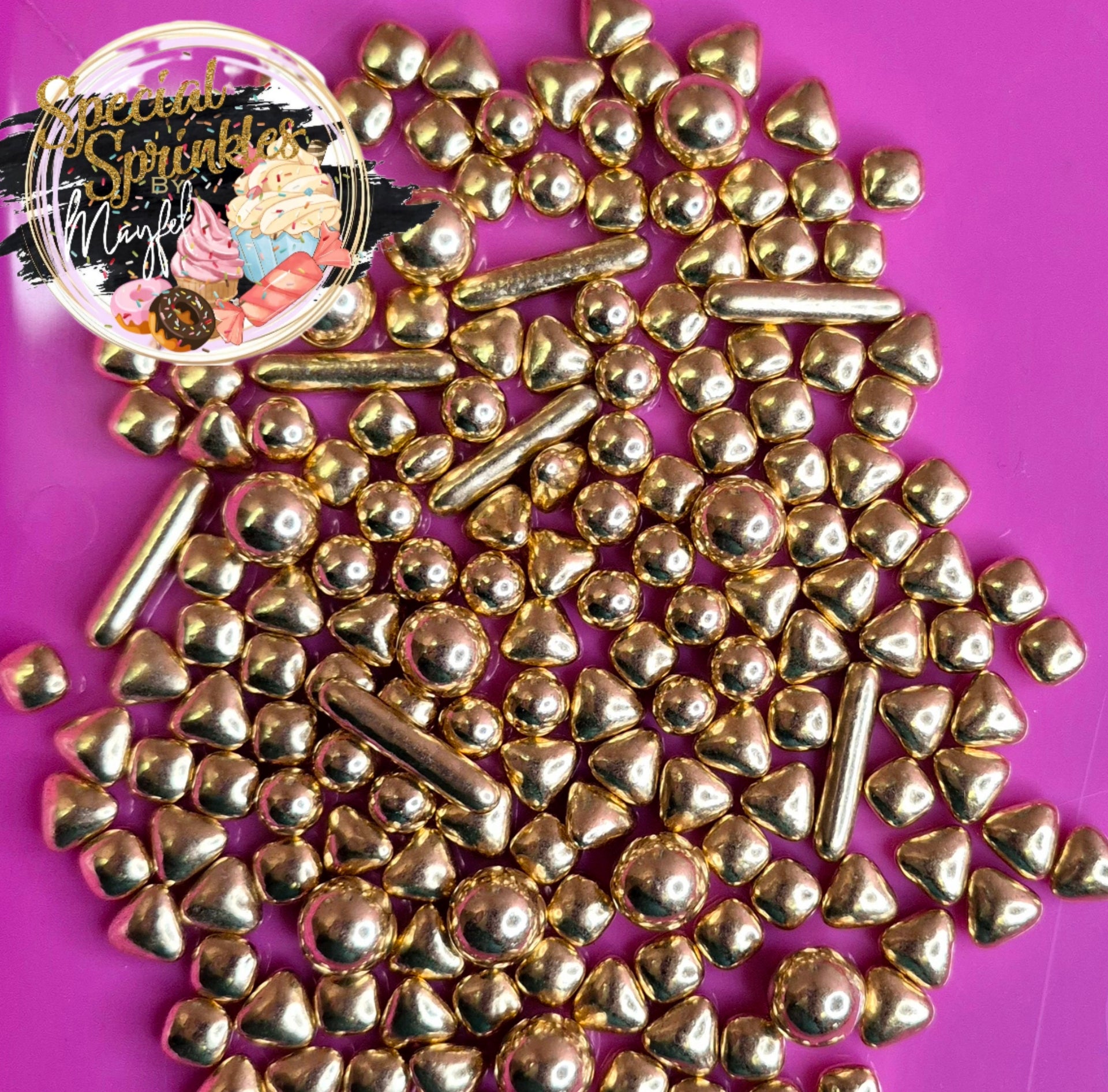 Hermosa mezcla con diferentes formas en color oro pequeños.