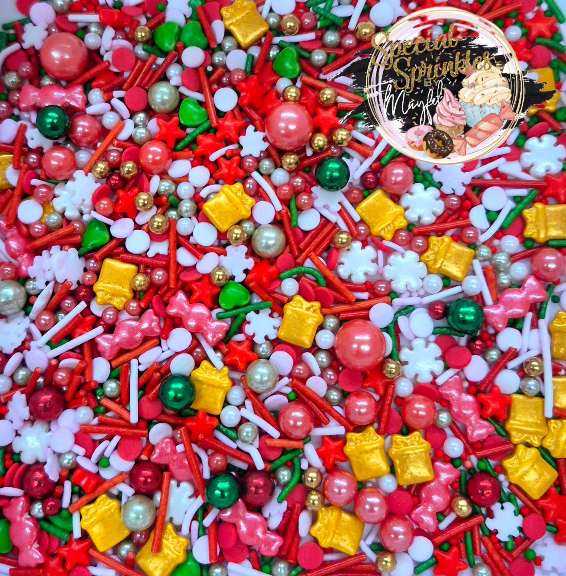 Ingredientes: Sugar 71.26%, corn starch 26.97%, dextrin 1.62%, carnauba wax 0.05%, shellac 0.5%, gum Arabic 0.05%, edible colorant E133, E129, E175, E141, E120.E124,0.03% for serving size (100gr). Son libres de gluten y GMO.