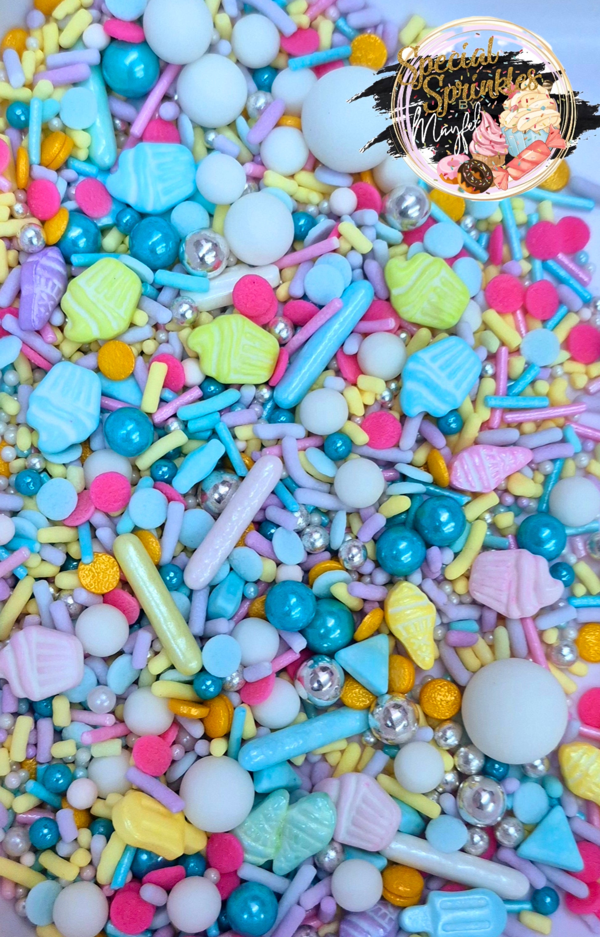 Ingredientes: Sugar 71.26%, corn starch 26.97%, dextrin 1.62%, carnauba wax 0.05%, shellac 0.5%, gum Arabic 0.05%, edible colorant E162, E210, E120, E141, E133, E102, E110, E129 ,E171, E175, 0.03% for serving size (100gr). Son libres de gluten y GMO.