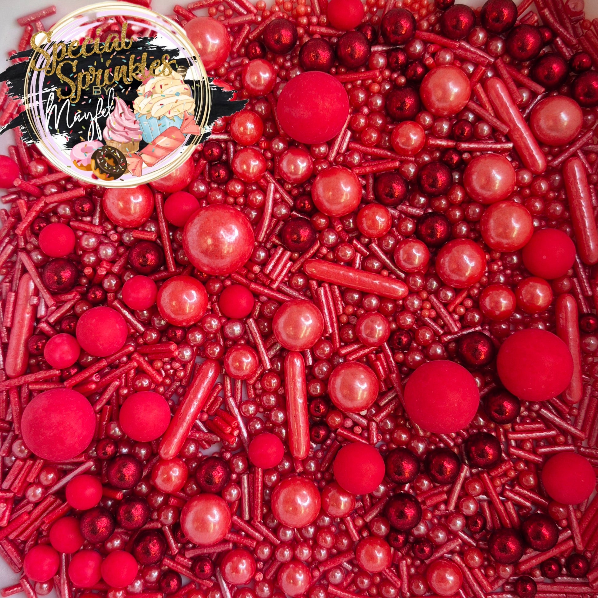 Ingredientes: Sugar 71.26%, corn starch 26.97%, dextrin 1.62%, carnauba wax 0.05%, shellac 0.5%, gum Arabic 0.05%, edible colorant E120, E124, 0.03% for serving size (100gr). Son libres de gluten y GMO.
